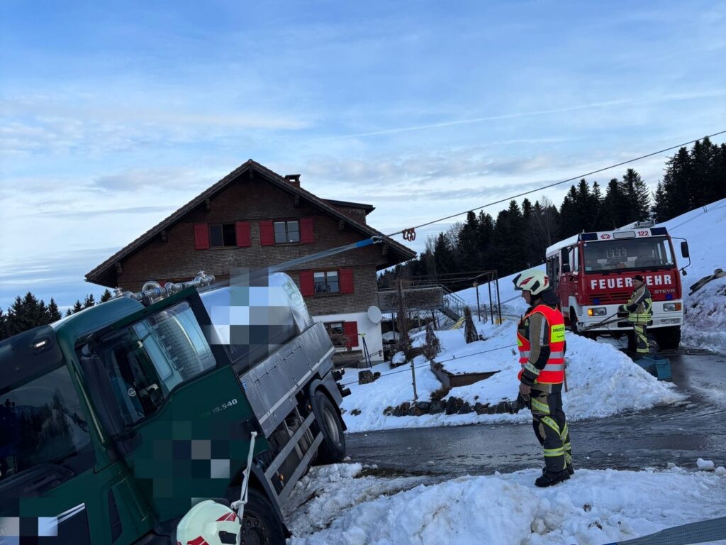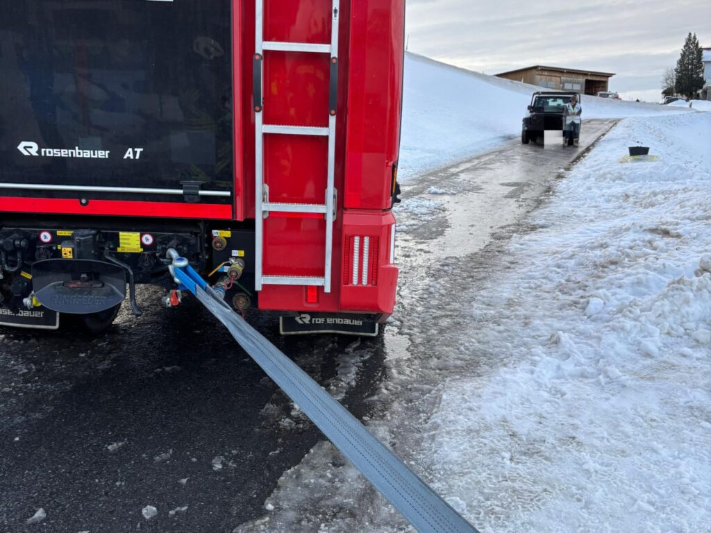 Am 13.01.2026 wurden wir zu einer Fahrzeugsicherung in Sulzberg Schönenbühl gerufen. Das Fahrzeug war von der Straße abgekommen und drohte abzurutschen. Nach dem wir die Sicherung des Fahrzeuges vorgenommen hatten, wurde dieses mittels Seilwinde geborgen. Im Einsatz waren unser TLFA, LFB-A und MTF.