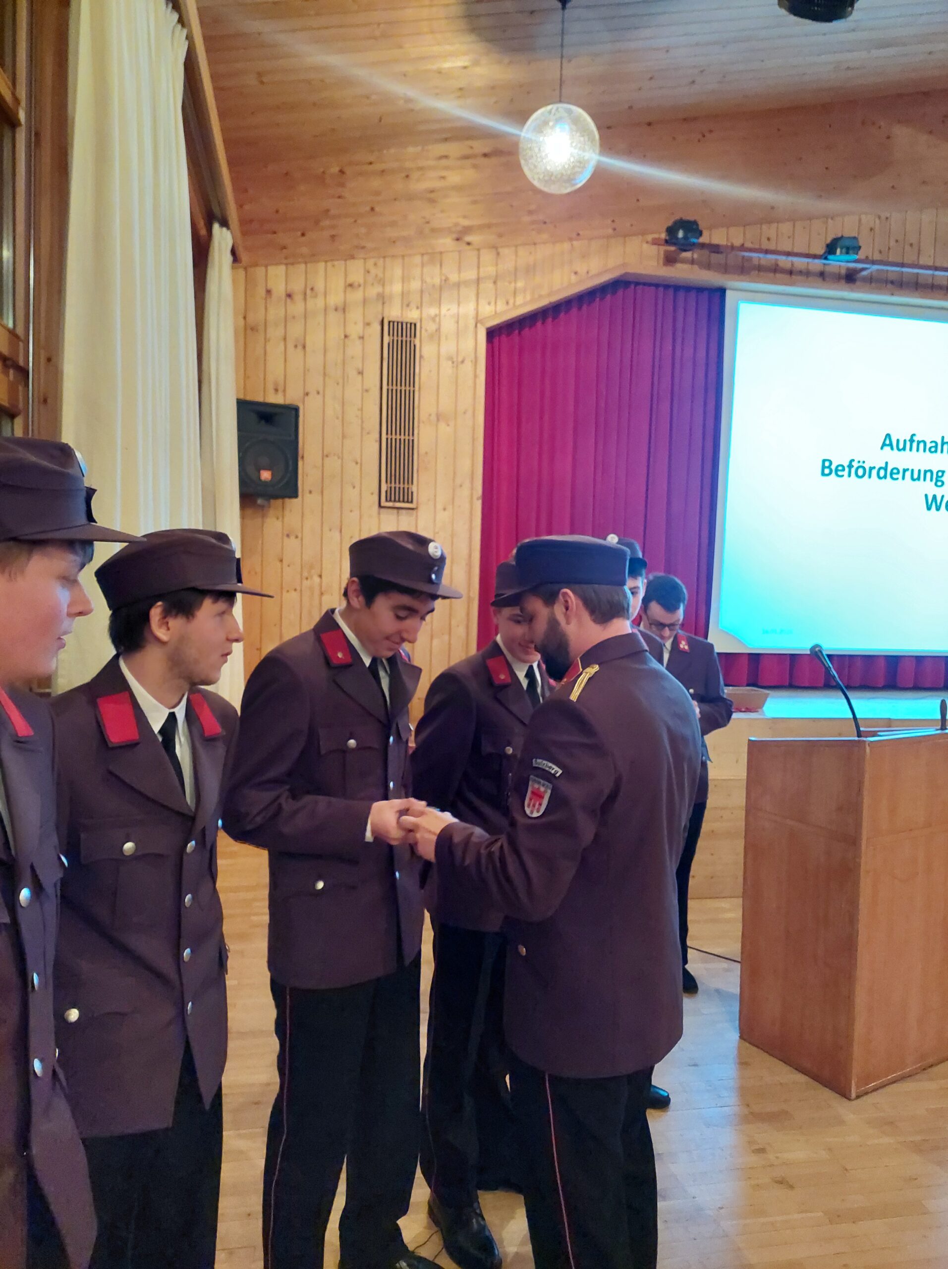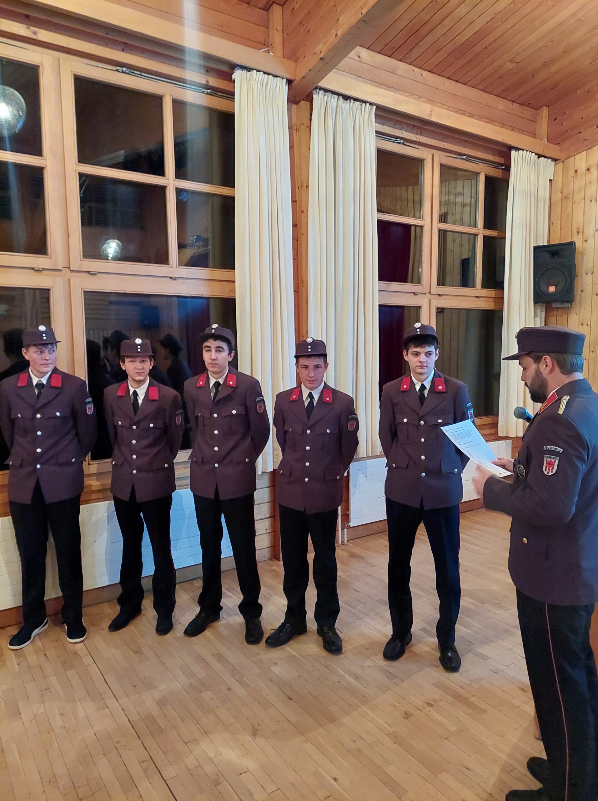 Die Wehrmänner Barta Johannes und Mätzler Tobias wurden zum Feuerwehrmann befördert. Neyer Dominik, Fink Jakob und Schwärzler Lukas wurden zum Oberfeuerwehrmann befördert.